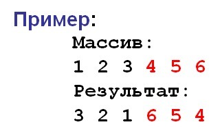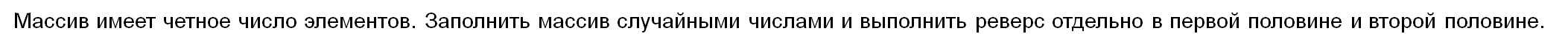 <1 задача> Массив имеет четное число элементов. Заполнить массив случайными числами и выполнить реверс отдельно в первой половине и второй половине.