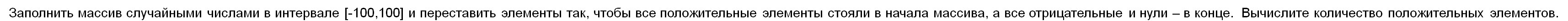 <2 задача> Заполнить массив случайными числами в интервале [-100,100] и переставить элементы так, чтобы все положительные элементы стояли в начала массива, а все отрицательные и нули – в конце. Вычислите количество положительных элементов.