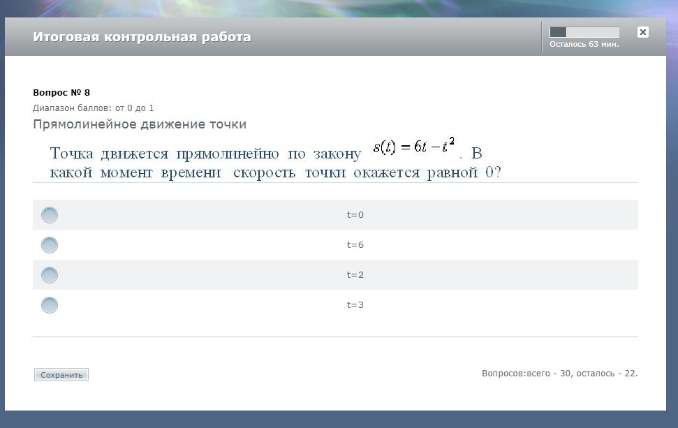 2 вариант 6 секунд. Подставим 6 с в уравнение получим s=0, чтобы скорость найти надо s разделить на t, будет 0