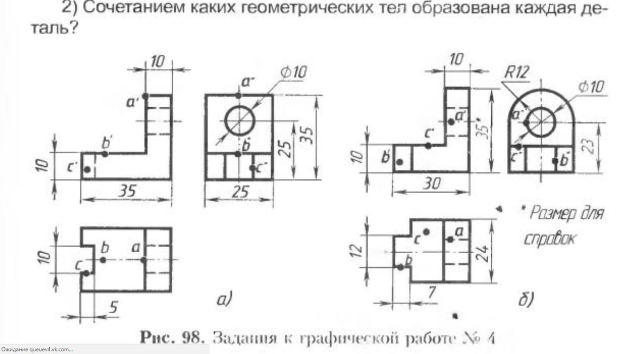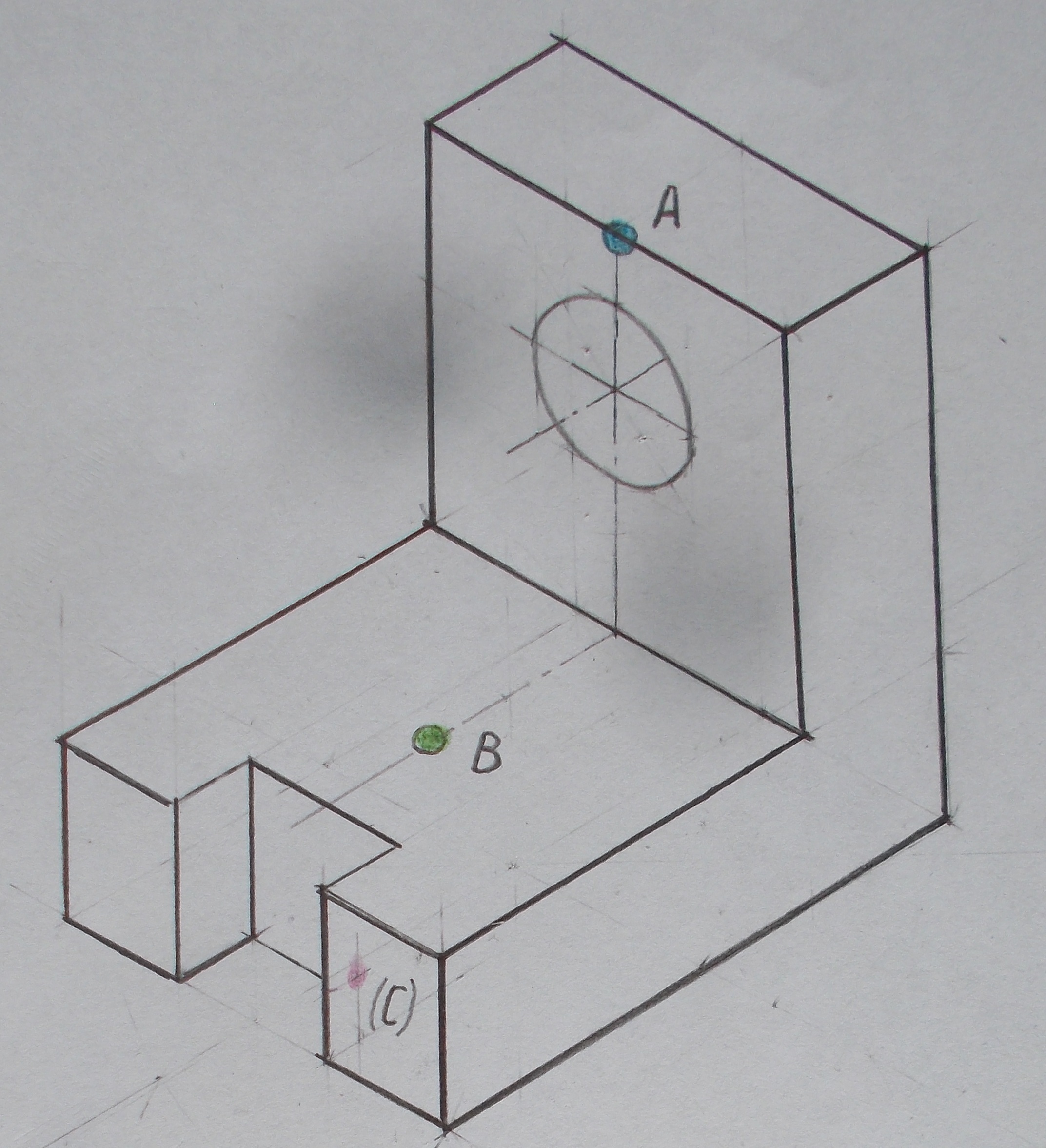 Построить аксонометрическую проекцию детали под буквой а). На аксонометрической проекции нанести изображение точек A, B, C.