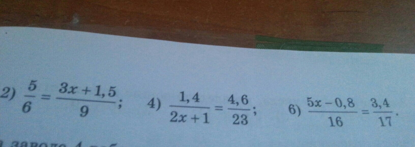 2) 5/6= (3x+1.5)/9