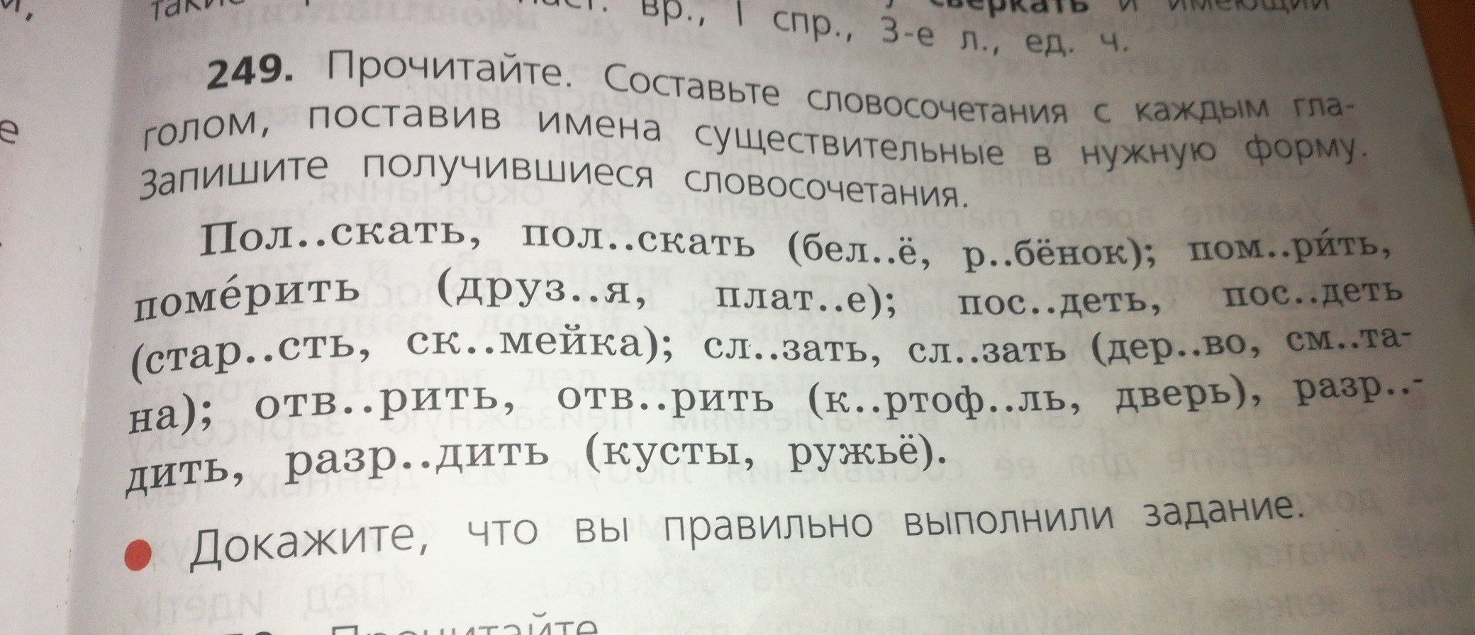 Полоскать белье поласкать ребенка померить платье помирить друзей посидеть на скамейке поседеть в старости слизать сметану слезать с дерева отварить картофель отворить дверь разрядить ружье разредить кусты