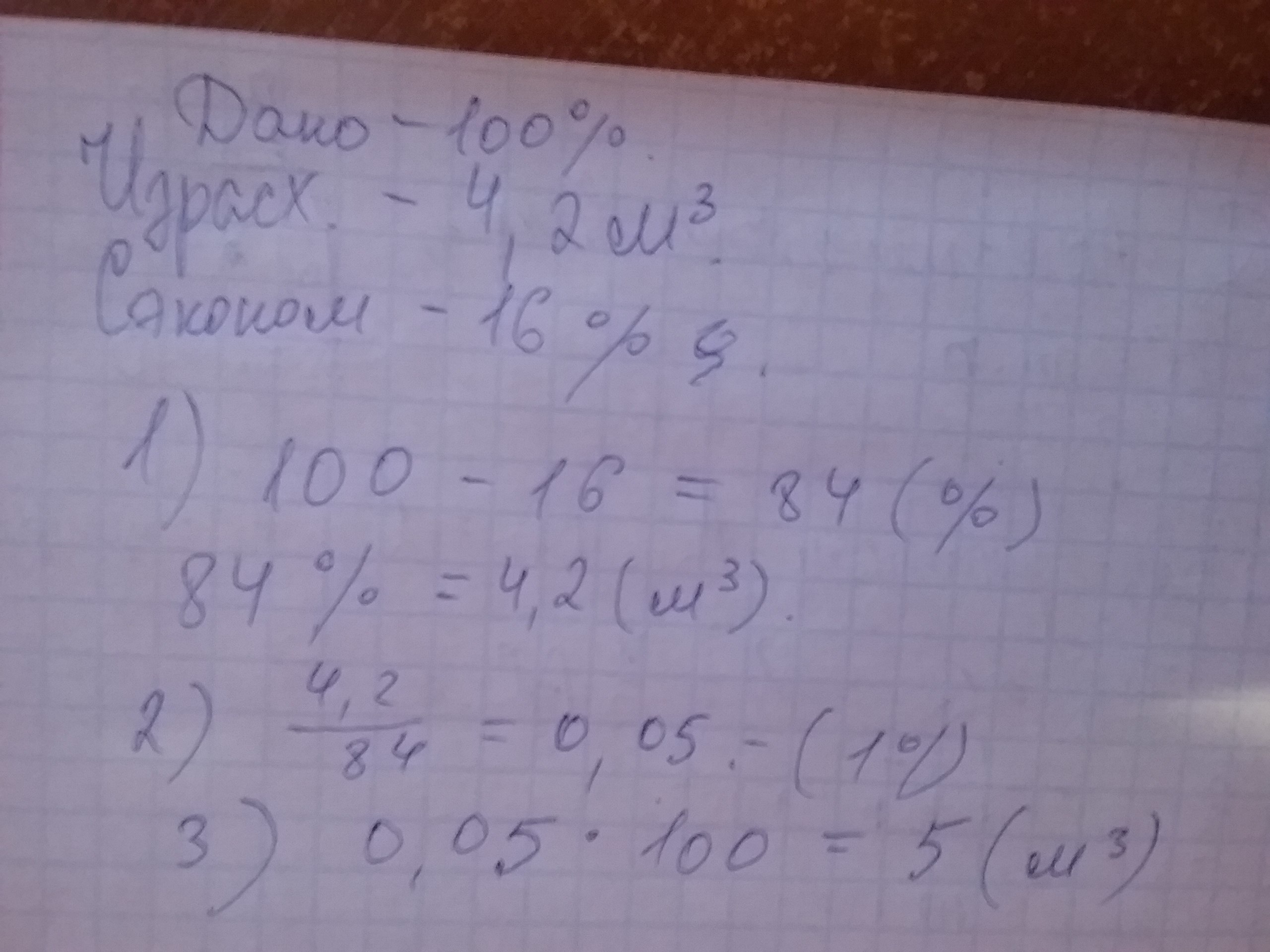 Бригада плотников израсходовала на ремонт здания 4,2 кубических метра досок. При этом она сэкономила 16% выделенных для ремонта досок. Сколько кубических метров досок было выделено на ремонт здания?