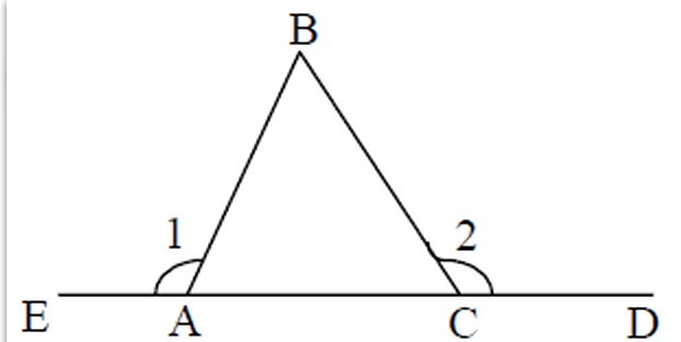 из угла 1 и 2, следует что угол А = углу С , как целые смежные с равным углами , значит треугольник ABC равнобедренный