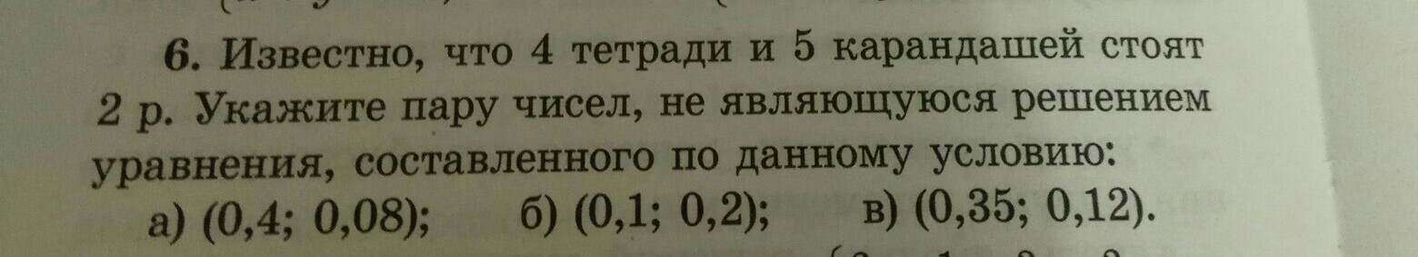 Ответ : б) (0,1 ; 0,2) не является решением уравнения, составленного по условию.