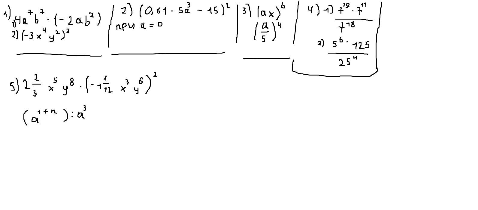 ребят помагите пожалуста решить задания только с решением в 1 задании нужно упрастить выражение во втором нужно найти значение выражения в 3 нужно возвести в степень в 4 нужно вычислить в 5 нужно упростить помагите пожалуста дам лучшее решение кто решит