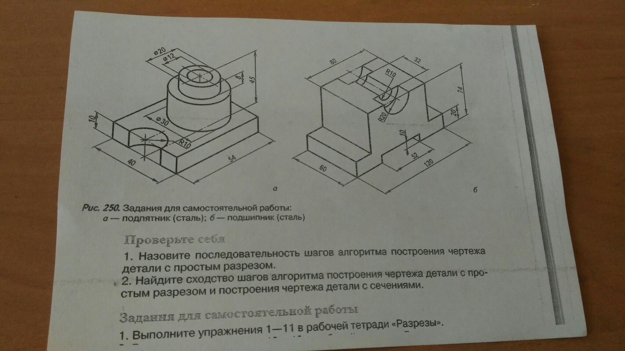 В задании не достаточно размеров для построения видов и разреза. Нет размера для определения оси цилиндрической части детали, не указана глубина отверстия в цилиндрической части детали.