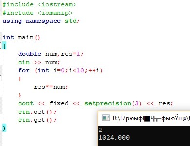 Напишите программу в с++ :Нужно вывести 10-ю степень полученного числа с тремя знаками в дробной части. Спасибо!