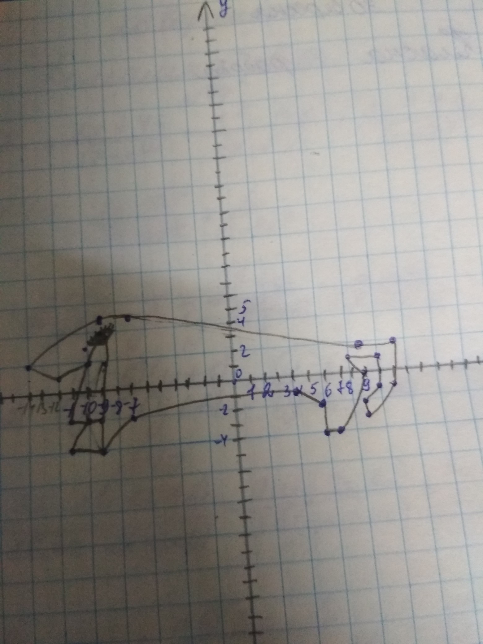 Помогите нарисовать по координатам (-10;2),(-12;1),(-14;2),(-9;5),(-7;5),(9;2),(11;2),(11;-1),(9;-3),(9;-2),(10;-1),(10;1),(8;1),(9;0),(7;-4),(6;-4),(6;-4),(6;-2),(4;-1),(-4;-1),(-7;-2),(-9;-4),(-11;-4),(-10;-2),(-9;-2),(-9;4),(-10;2),-11;-2),(-10;-2).Глаз:(-10;3)