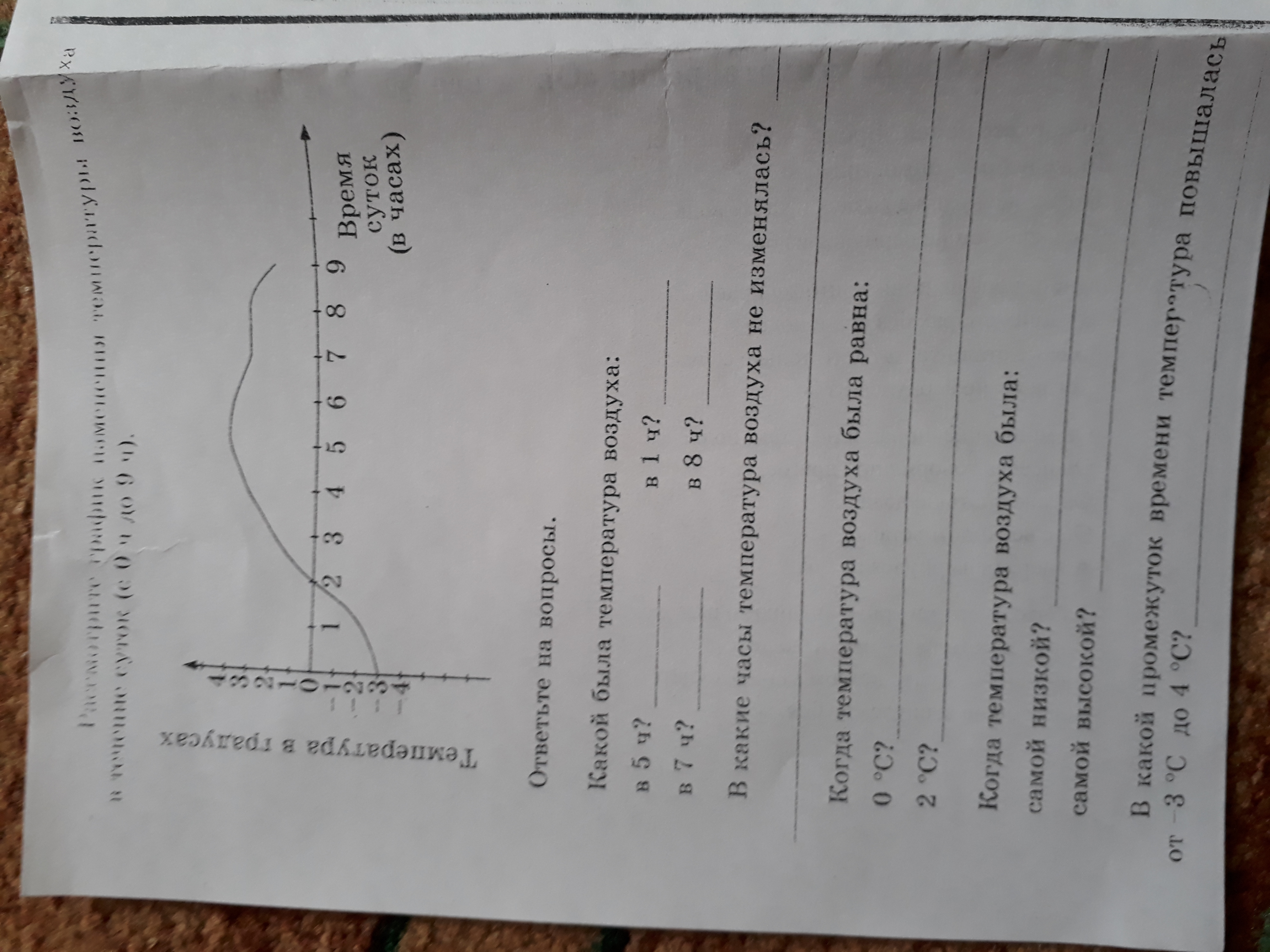 В какой промежуток времени температура повышалась с -3 до 4с