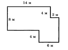 Измерения нижней вырезанной части равны (14 м + 2 м - 6 м) = 10 м и 4 м, площадь того прямоугольника