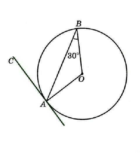 По свойству касательной, CA ⊥ OA ⇒ ∠OAC = 90°. Значит: