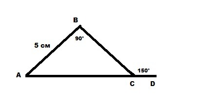 Угол АСВ=180-150=30