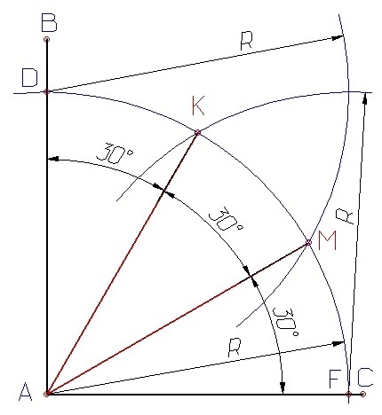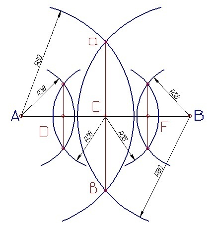 2. Деление отрезка на 2 и 4 равные части. Деление угла на 2 равные части; деление прямого угла на 3 равные части; деление дуги на 4 и 8 равных частей; деление окружности на 3,6,12 равных частей;