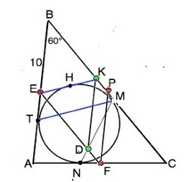 ВК=ВЕ=10 (из равных отрезков ВТ и ВN- вычли равные ЕТ и КN)