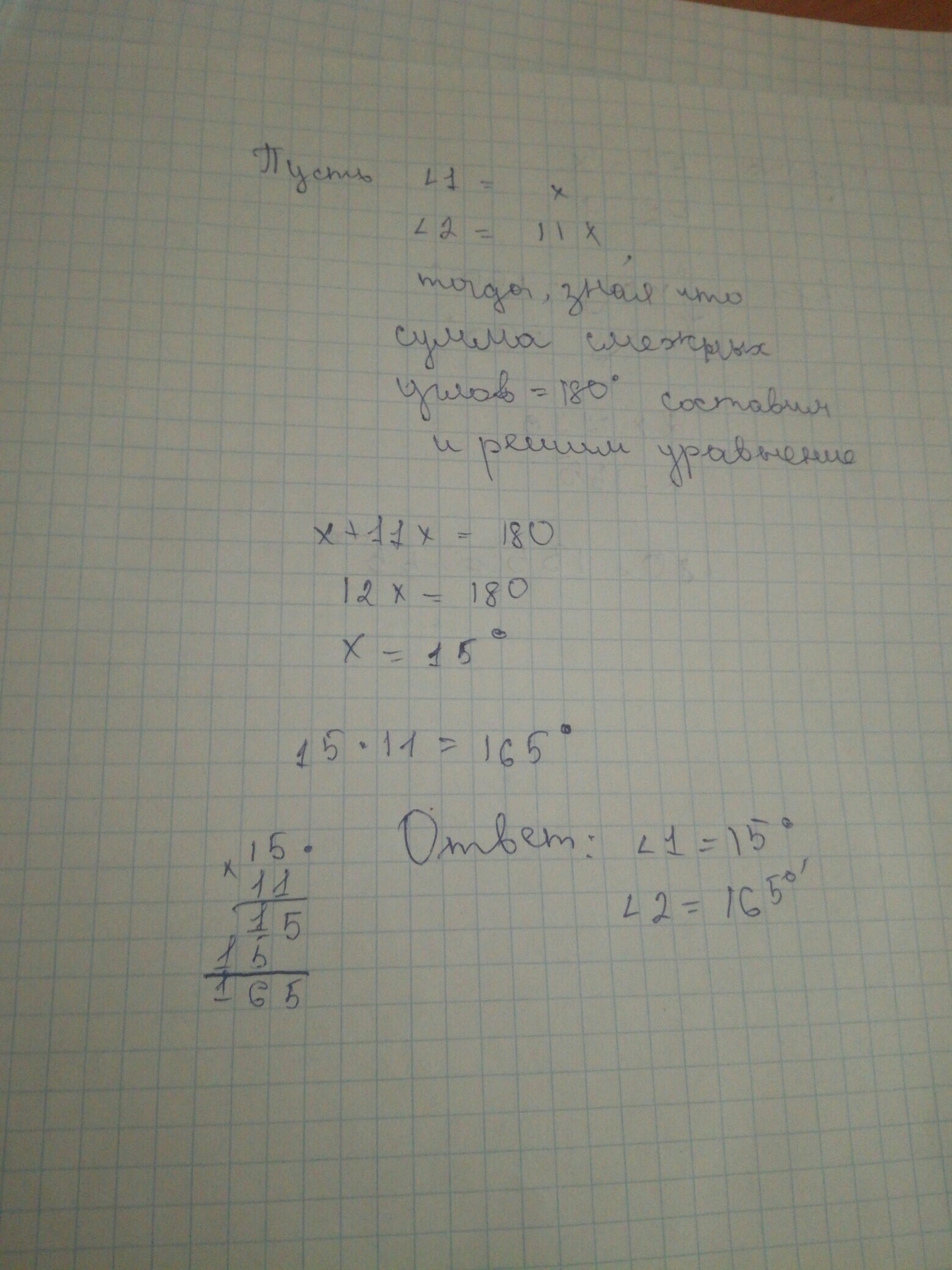 Ответ: угол 1= 15 градусов, угол 2= 165 градусов
