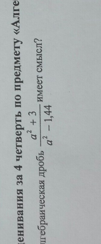 алгебраическая дробь (а^2+3)/(а^2-1,44) имеет смысл, если а²-1,44≠0, т.е. при а≠1,2 и а≠-1,2
