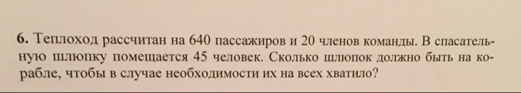 Разделим кол-во людей на 45, чтобы найти количество шлюпок на 660 людей