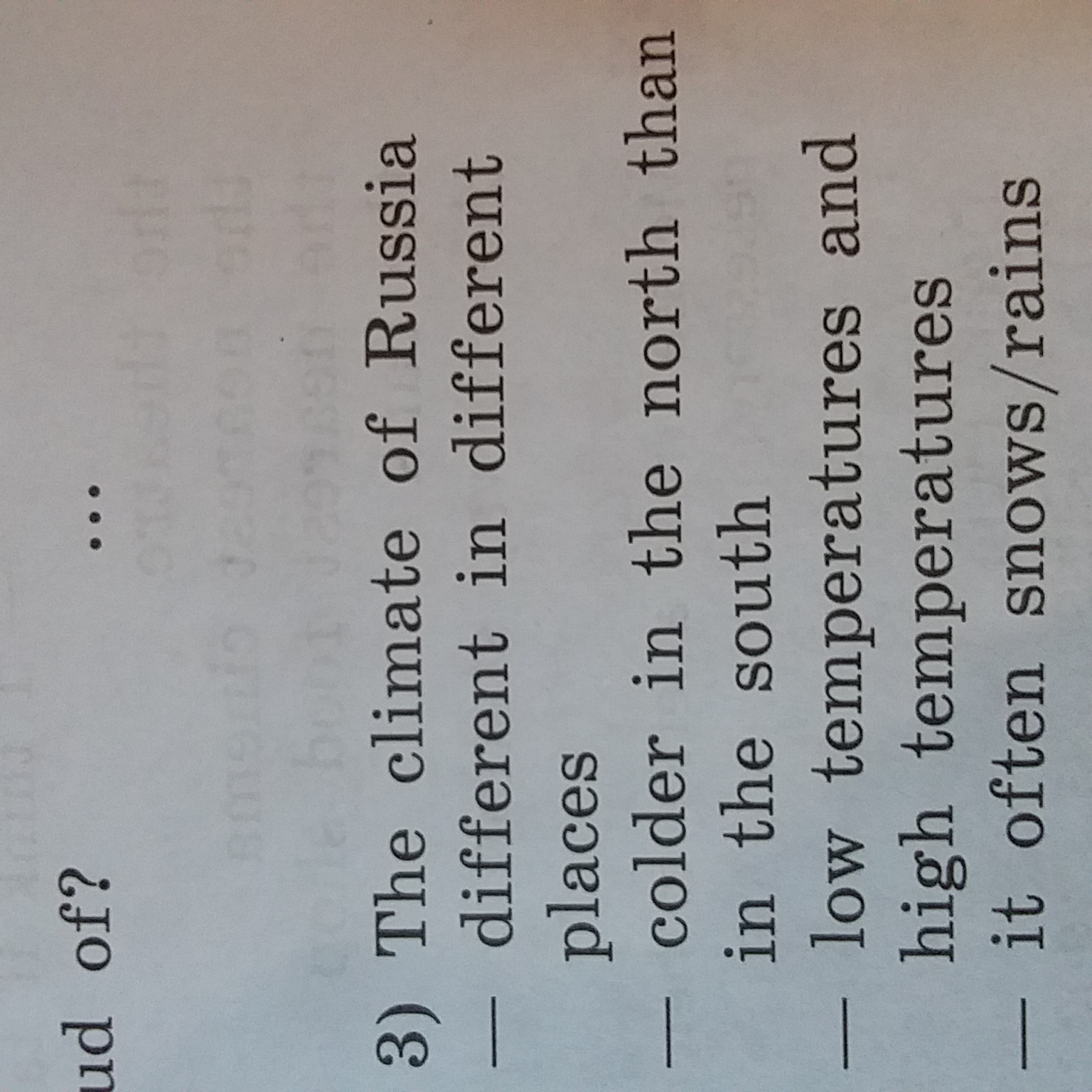 In Russia the weather every day is different.Today was rain.Tomorrow will be the sun.But if the rain comes and it goes long.Summer is usually hot.But this is not always.And in the winter it is very cold.And through the winter is snow white.My favourite season is spring.Because the sun is shining and it gets warm.