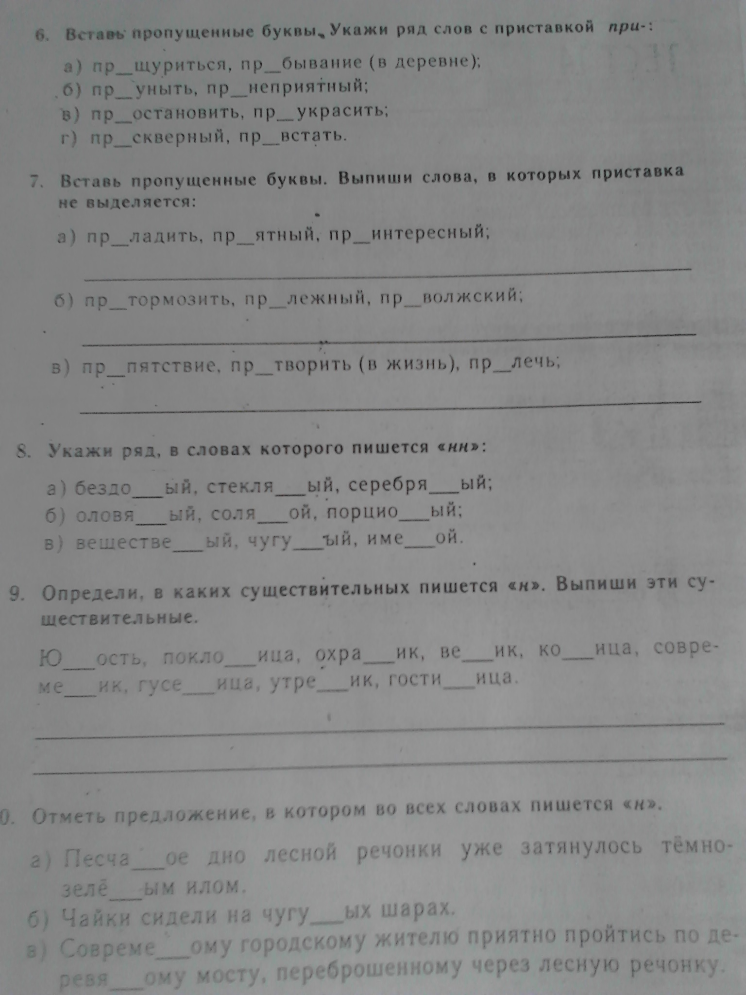 9. юность, поклонница, охранник, веник, конница, современник, гусеница, утренник, гостиница.