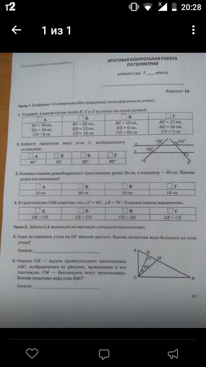 3) А (P = Сумма всех сторон, т.к △ Равнобедренный, то P = 60 - (24 + 24) = 12)