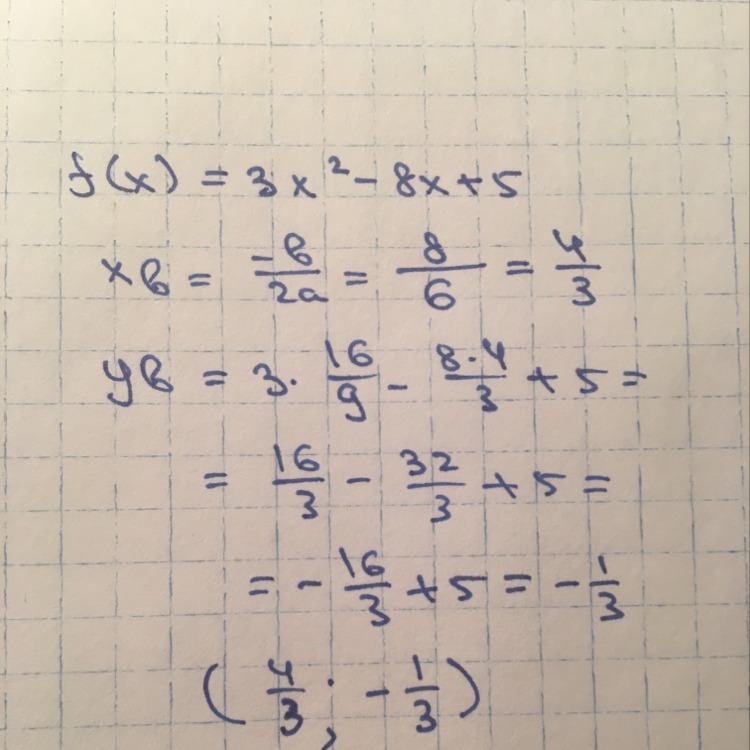 ув=(4/3)^2-8*4/3+5=-3. 8/9