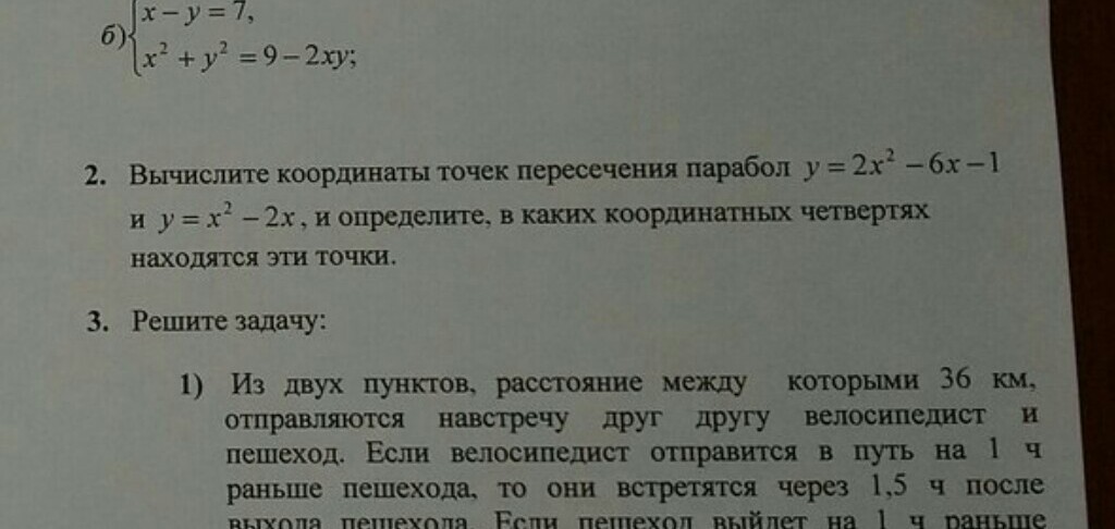 приравняй эти параболы и найди х'ы после этого подставь х'ы в приравненное уравнение и найди y