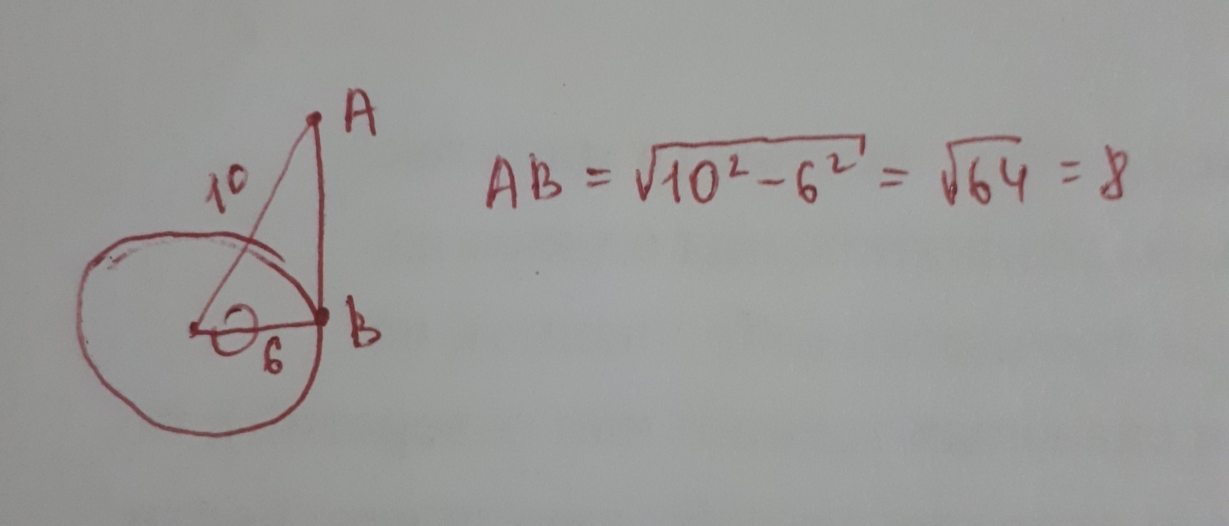 Прямая АВ касается окружности с центром О в точке В. Найдите АВ,если ОА =10 см, а радиус окружности равен 6 см