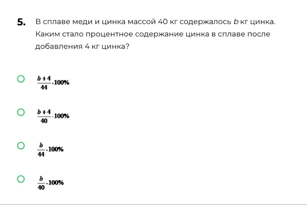 b+4÷44*100% будет соотношение цинка в сплаве.