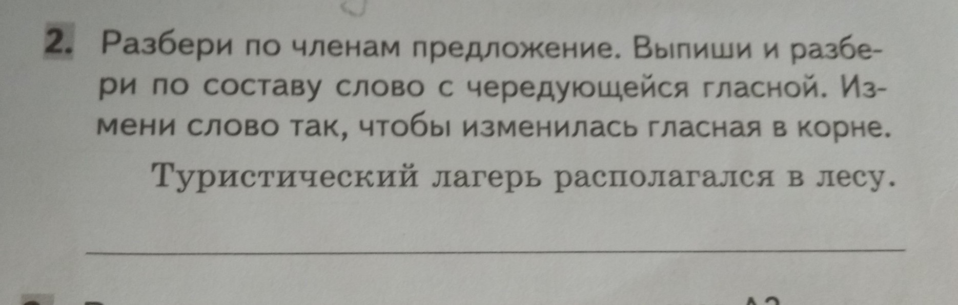 Туристический(какой? прилагательное, подчеркивать волнистой линией) лагерь(что? существительное подлежащее, одной чертой) распологался( что делать? глагол сказуемое, двумя чертами) в(предлог) лесу (где? вроде бы это наличие, подчеркивать пунктиром с точкой).