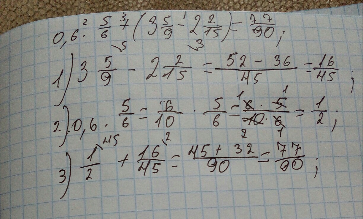 0,6*5/6+(3 5/9-2 2/15)=3/5*5/6+(32/9-32/15)=1/2+64/45=173/90