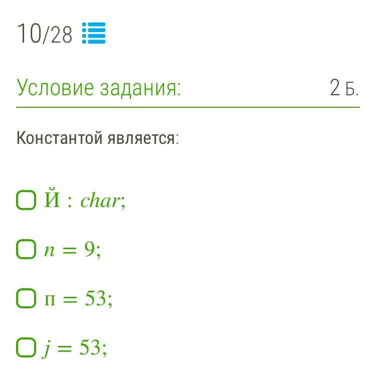 Константой является первый ответ: Й : char