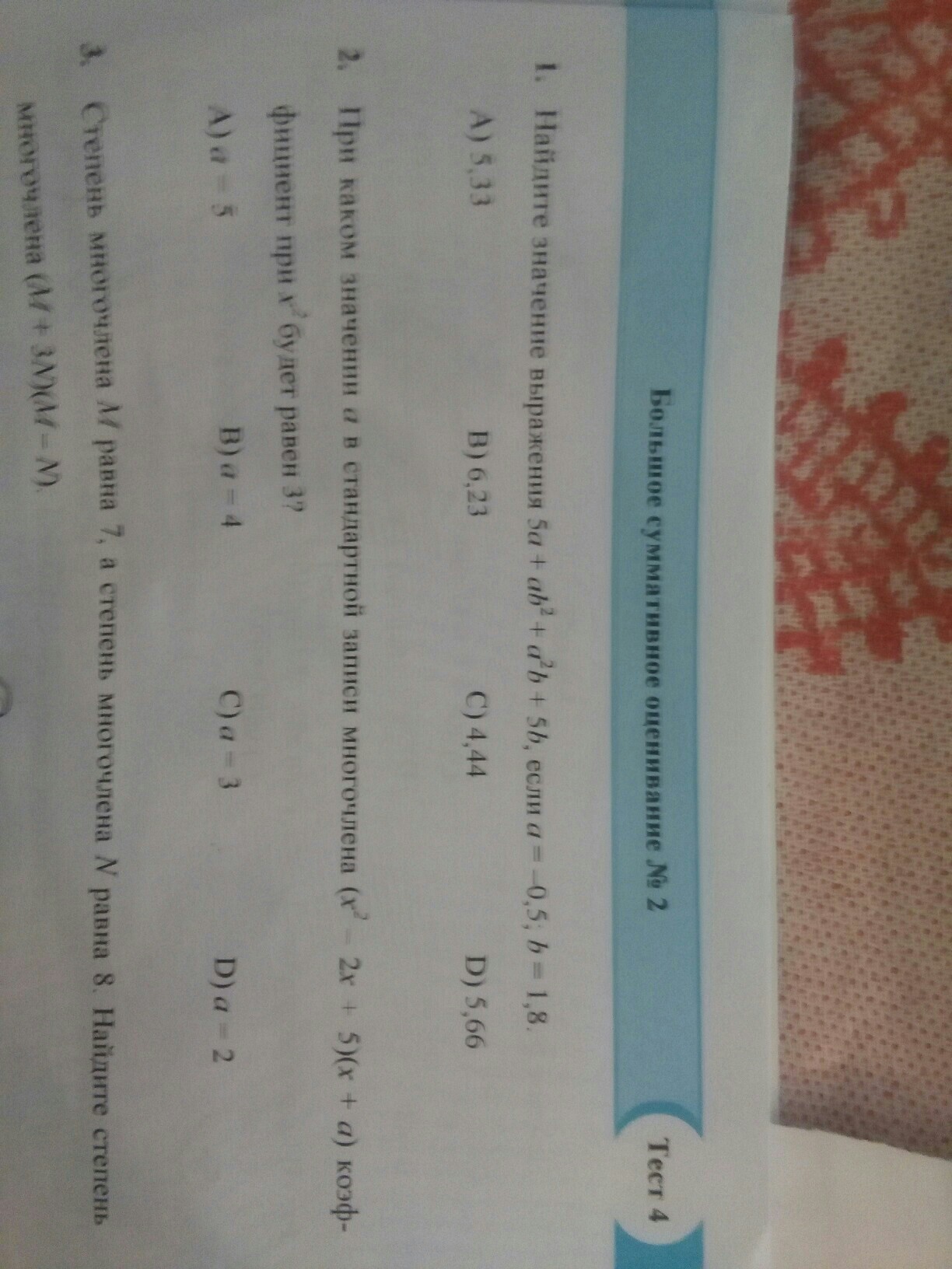 1) 5*(-0,5)-0,5*(1,8^2)+(-0,5^2)*1,8+5*1,8= 5,33 А) - верный ответ