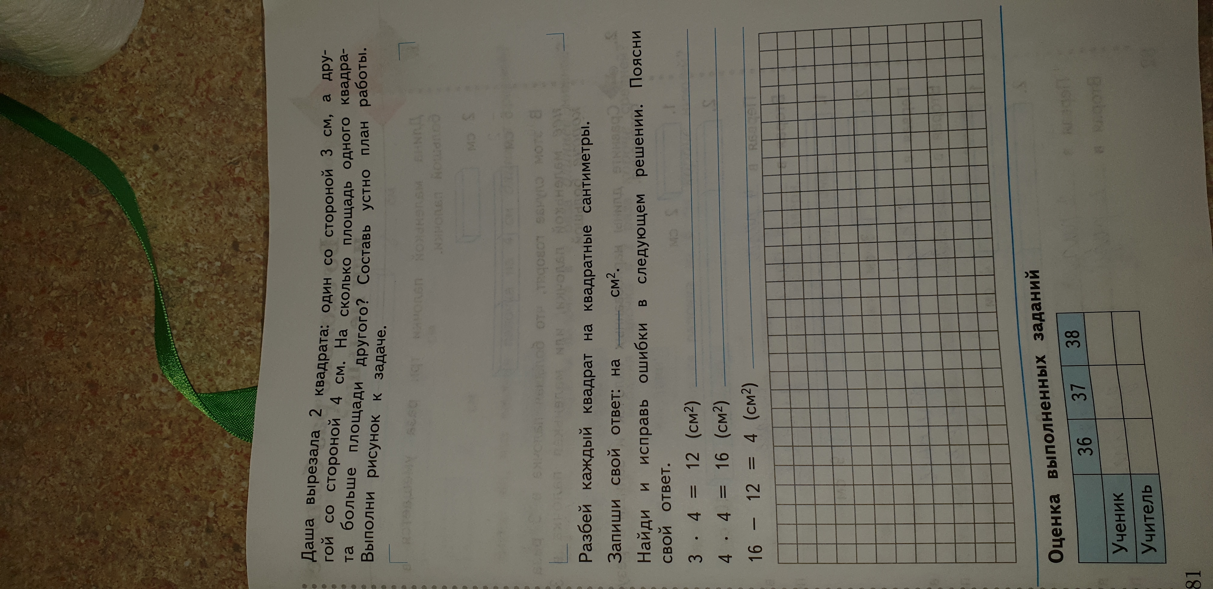 3) 16-12=4 (см) - на 4 см второй квадрат больше первого.
