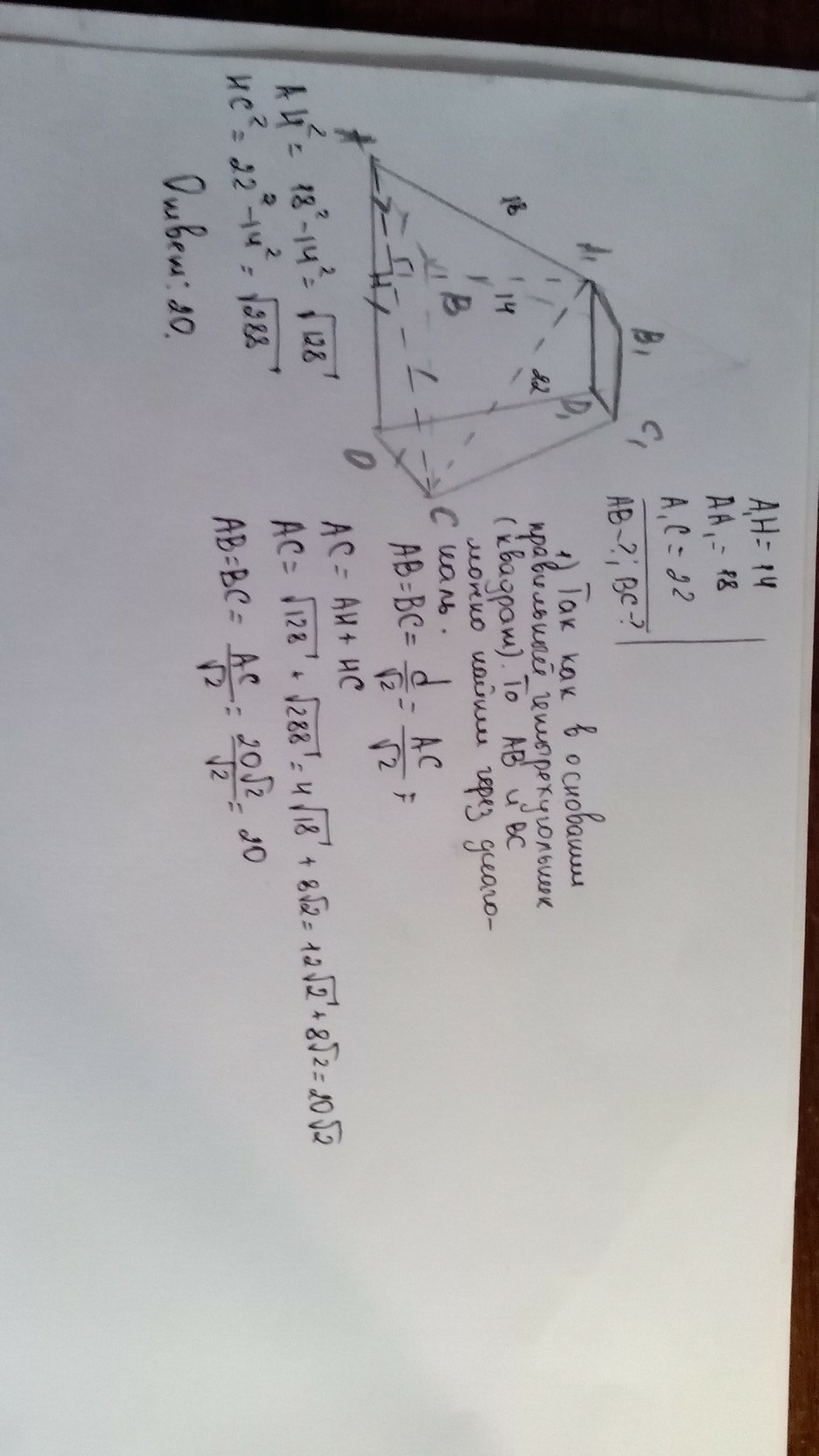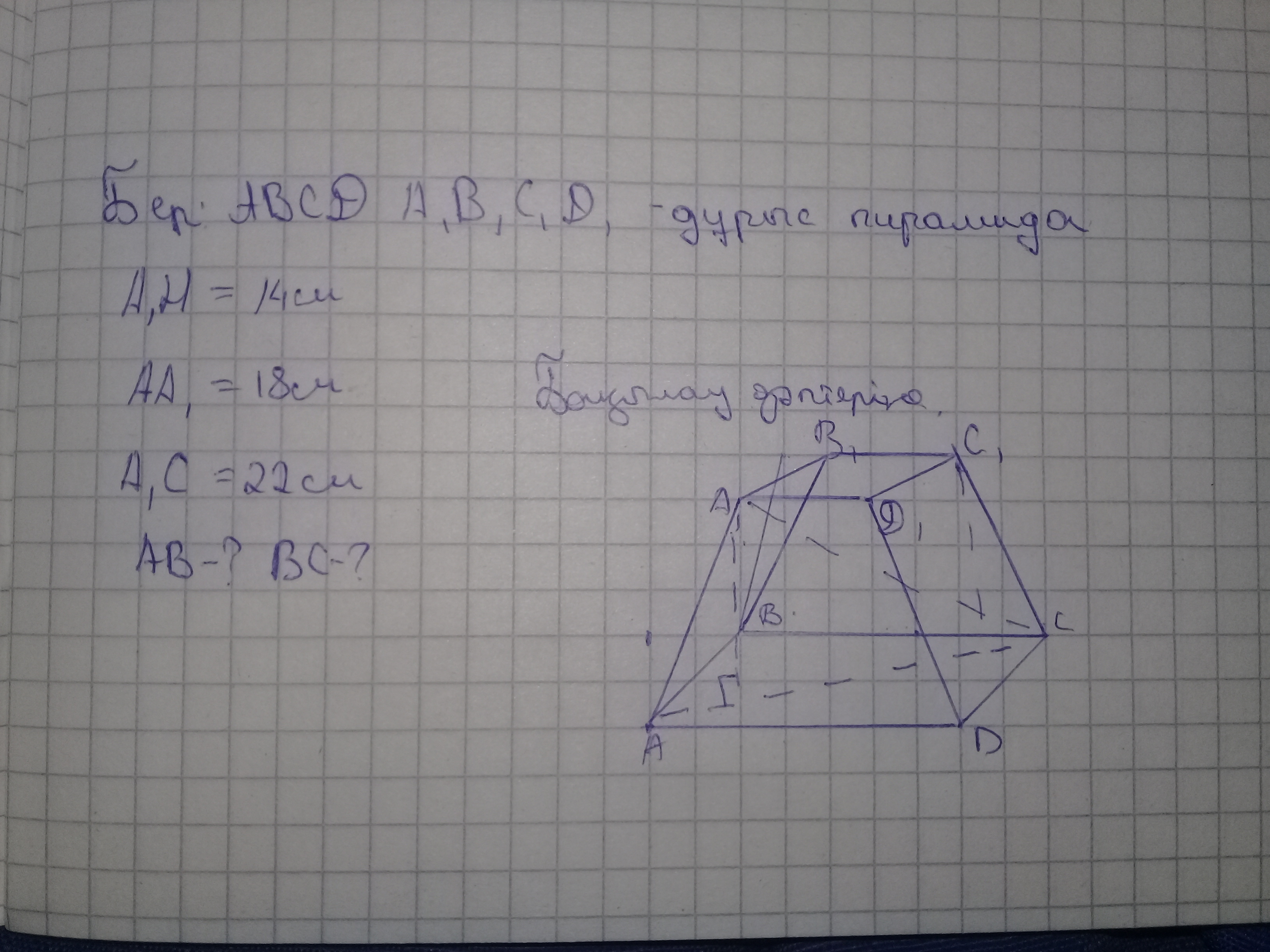 Дано: ABCD A1B1C1D1-Правильная пирамида