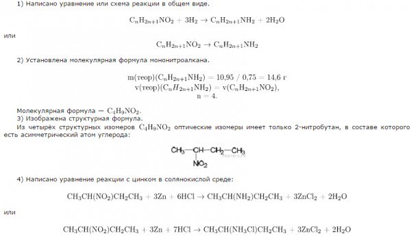 2)При восстановлении 20,6 г мононитроалкана водородом в газовой фазе образовалось 10,95 г амина. Выход продукта составил 75%. Установите молекулярную формулу мононитроалкана.