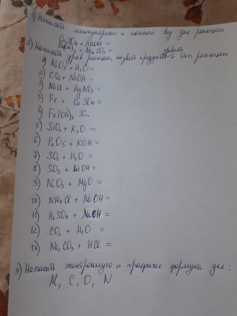 1) CuSO4 + 2NaOH = Cu(OH)2 ↓ + Na2SO4