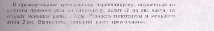 гипотенуза с делится на 2 отрезка высотой h: на 1.8 и на а+2-1.8=а+0.2