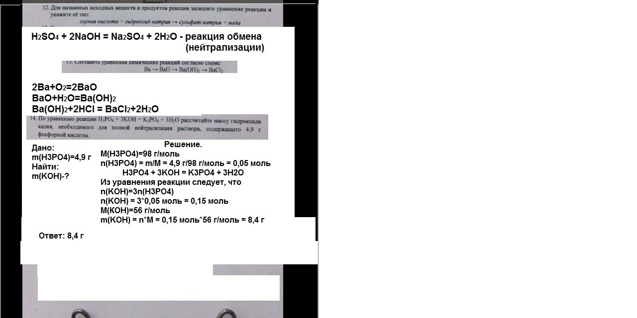 12. H2SO4+2KOH=K2SO4 + 2H2O - реакция обмена