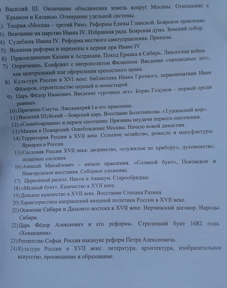 11. а)Василий Шуйский - боярский царь (1606-1610)возведен на престол без "земского совета, тайно противостоял Борису Годунову, поддерживал Лжедмитрия 1, но затем убил его, против него поднялись южные города воевал против Лжедмитрия 2, дал крестоцеловальную запись (попытка перехода к коллективному боярскому правлению, но клятву нарушал), был пострижен в монахи в результате боярского заговора; б)1606-1607, причины - голод, усиление крепостничества, политический кризис; состав - крестьяне, посадское население, на первом этапе - дворяне; ход: 1 этап - Путивль-Москва-с.Коломенское, 2 этап Калуга-Тула; причины поражения - нет программы, единой организации, разнородный состав, стихийность, разрозненность; значение - впервые в России - широкое антифеодальное движение; в)"Тушинский вор" (1607-1610) самозванец, выдававший себя за спасшегося 17 мая 1707 года Лжедмитрия 1. Настоящее имя и происхождение не установлено, летом 1608 года обосновался в Тушино с остатками войска Болотникова.
