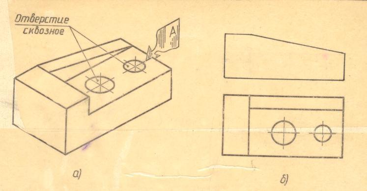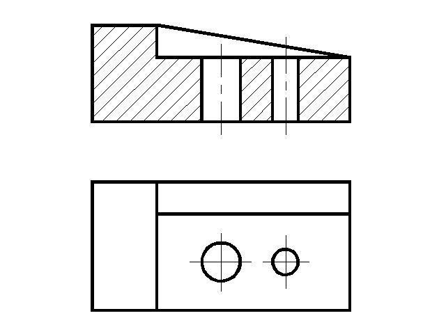 Черчение. На рис. а дано наглядное изображение, детали, из рис б - чертеж. Руководствуясь данными изображения, постройте фронтальный разрез и при необходимости обозначьте его.