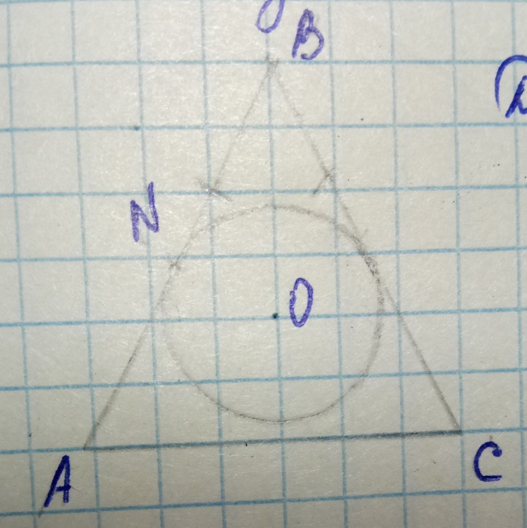 решите задачу, треугольник авс равнобедренный, ас основание, периметр треугольника равен 68 см, ав равно 20 см, найти вн если точка н- точка касания, окружность вписанная и проходит через сторону ав