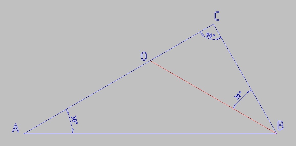 ∠ОСВ = ∠АВС/2 = 60/2 = 30° по определению биссектрисы угла