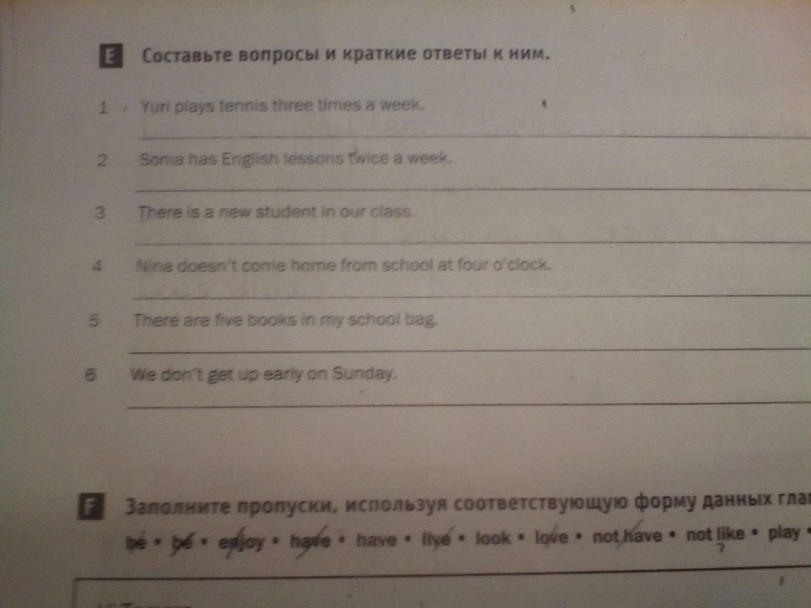 4) Does Nina come home from school at four o'clock? - No, she doesn't.