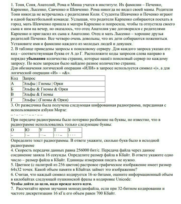 Номер 4. переведем биты в байты. Как известно 1Байт=8бит. Теперь разделим 256000 на 8, получаем 32000Байт. Но нам нужен ответ в КБайтах, а как известно 1 КБ= 1024байт, разделим 32000 на 1024 и получим 31,25, а это 32КБайт