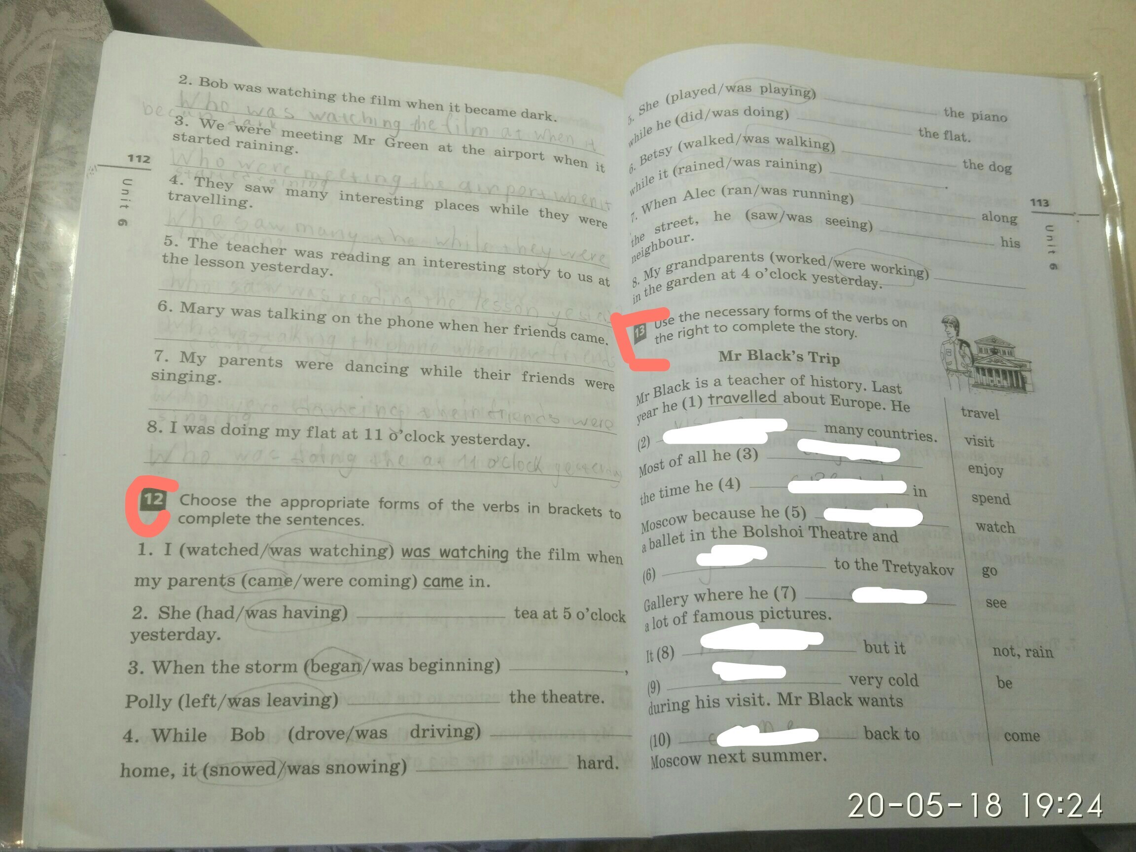 5. was playing; was doing