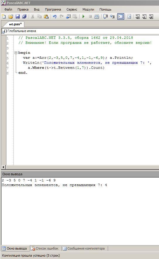 Writeln('Положительных элнементов, не превыщающих 7: ',
