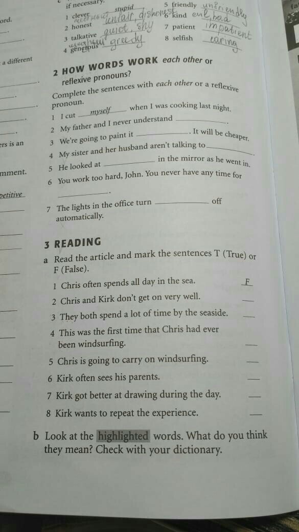 2 each other 3 ourselves 4 each other 5 himself 6 yourself 7 itself