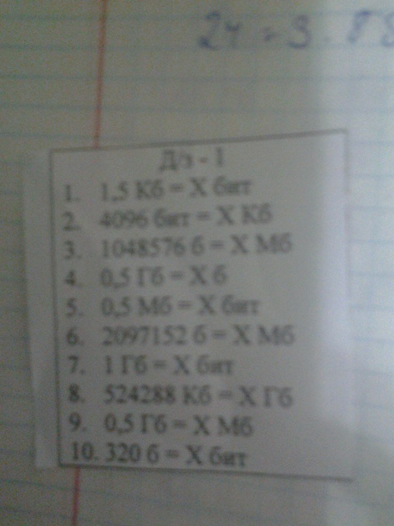 5. 0,5 Гб= X бит