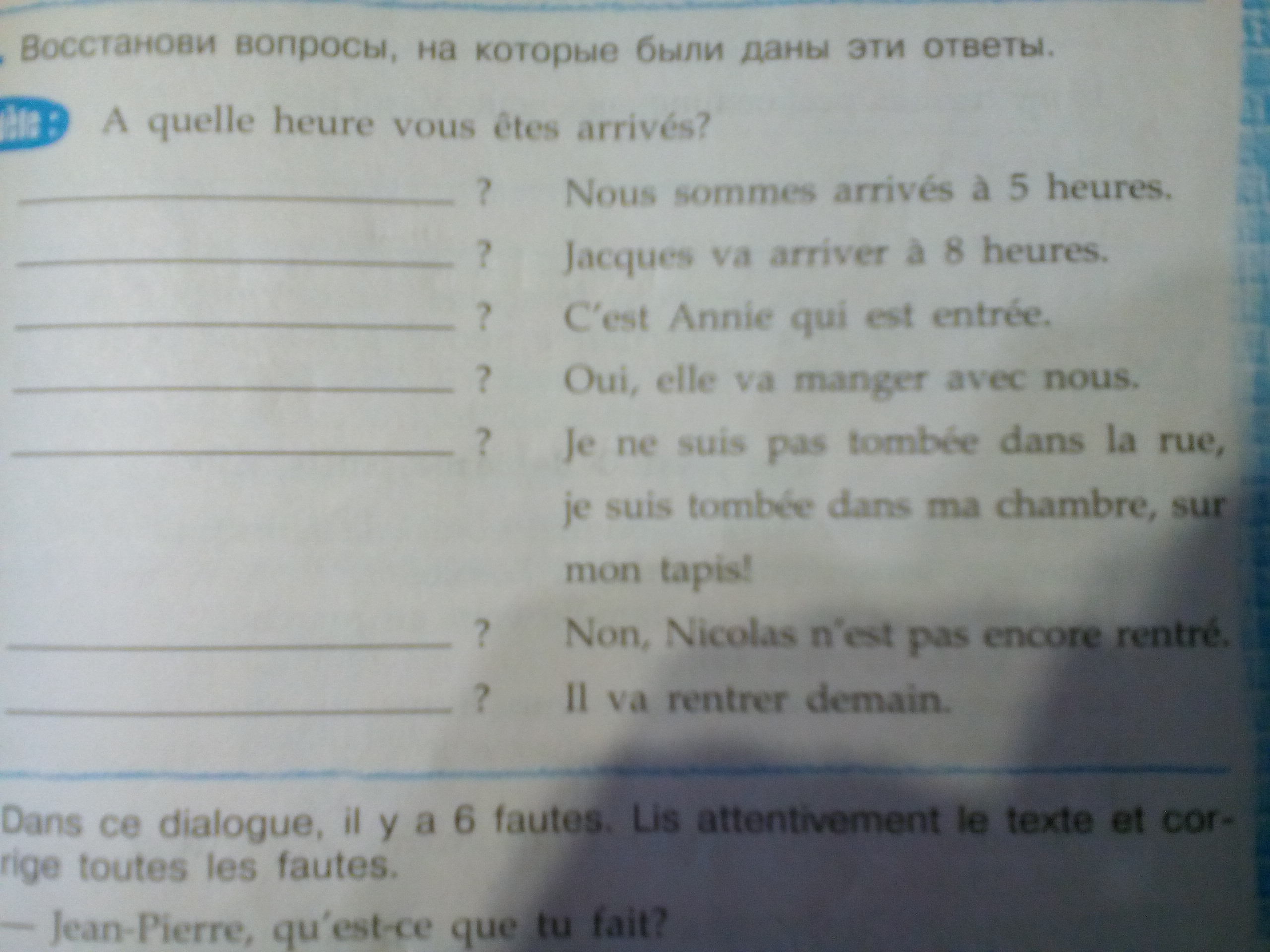 5. Nicolas, est déjà rentré?6. Quand va t-il rentrer?